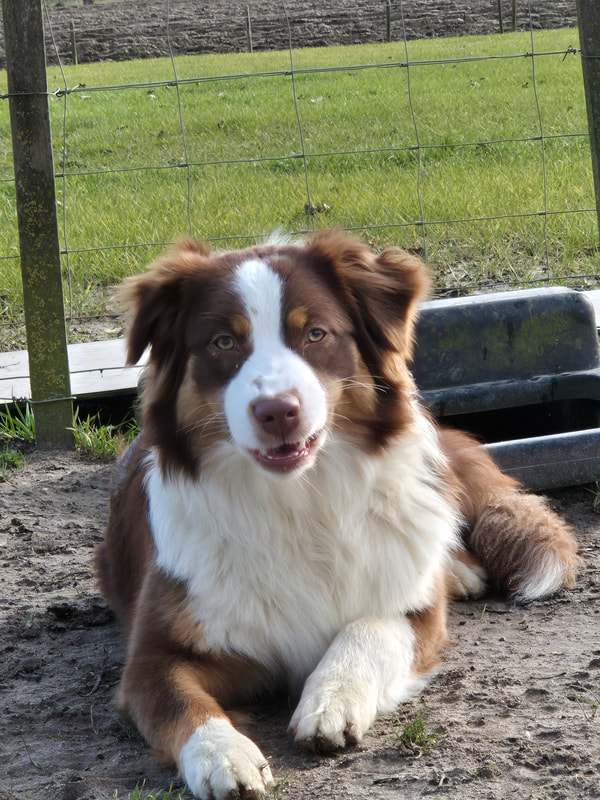 Wij hebben op het moment 6 honden bij oostromshoeve. ik wil ze op deze pagina aan je voorstellen. van kleins af aan ben ik op gegroeid met honden en ben dan ook echt gek op ze. thuis hebben we veel soorten honden gehad, maar uit eindelijk hadden we wippetjes waar ik vroeger ook mee naar cursus ging. eenmaal op mij zelf hadden we al snel een kruising van een friese stabij en kelpie een heel druk bewegelijk hondje die altijd bij ons was en mee het land in ging helaas is hij niet oud geworden. al heel snel begon ik mij te interesseren in de border collie met wat hulp heb ik toen mij jessy gekocht met behulp van de fokker , met haar ben ik ook naar shows geweest. Heb ik met haar mijn eerste nestje gefokt , zo mooi veel geleerd , we hebben met jessy 2 nestje gehad. daarna hebben we haar niet meer gedekt. toen kwam ayra erbij met haar zei is een parson russel terrier. ayra is nu oud maar ze was altijd een heel trouw en lief hondje. met haar hebben we 2 nestjes gehad helaas heeft ze een keizer snee gehad en hebben we daarna niet meer met haar gefokt. Jessy is 14 jaar geworden, na haar hebben we nog 1 border gehad mara misschien dat sommige van jullie haar wel helaas is zei niet oud geworden. daarna gaan na denken wat we graag wouden, zo zijn we eigenlijk bij de aussie gekomen. ik vind het een eerlijk ras precies wat is zoek Ruby was onze eerste ze was al 9 maanden toen ze bij ons kwam. maar van begin af aan echt mijn maatje door dik en dun. waar ik ben is zei ook. een halfjaartje later is aiko erbij gekomen hij was al bijna 2 toen hij bij ons kwam wonen. beide honden zijn super lief,